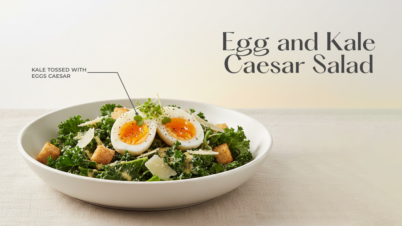 This Egg and Kale Caesar Salad is a healthy twist on the classic Caesar salad, with protein-packed eggs and nutrient-rich kale.